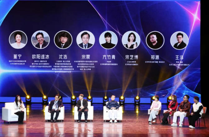 在专家发言环节,欧阳逸冰从艺术本质出发,重申“人是根本,科技是羽翼”的核心理念,强调必须守护艺术的人文精神与情感温度;沈浩从人才培养维度切入,深入剖析“艺术+科技”复合型人才的当代价值与系统化培养路径;宋震结合中央戏剧学院数字戏剧系的创新实践,分享了智能科技与戏剧艺术深度融合的前沿探索。三位专家的见解既有理论高度又贴近创作实际,为现场青年艺术工作者提供了宝贵启发。